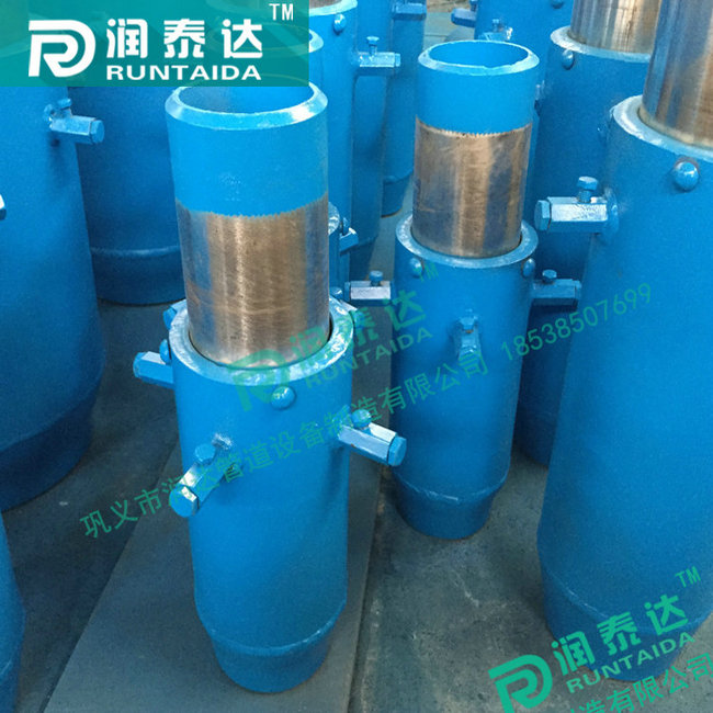 套筒補(bǔ)償器稱管式伸縮器,由外筒和內(nèi)筒的法蘭片上裝有限位桿,在外筒的內(nèi)壁上設(shè)有限位塊,外筒和內(nèi)筒之間由V型橡膠圈來密封。徹底解決了現(xiàn)有伸縮器填料摩擦力大、易泄露、難加工、易拖出的缺點(diǎn),具有密封可靠、摩擦力小、體積小、重量輕、防拉出等優(yōu)點(diǎn)。套筒補(bǔ)償器的使用壽命大,疲勞壽命與管道相當(dāng)。滑動(dòng)表面經(jīng)特殊處理,在鹽水、鹽溶液等環(huán)境下耐腐蝕性能好,比奧氏體不銹鋼高50倍以上。套筒式管道伸縮器在管路中的極限位移和密封分析同時(shí),多年后因磨損導(dǎo)致密封效果減弱時(shí),可再次緊固法蘭,增強(qiáng)密封性能,也可將螺栓松開,取下壓圈,再裝進(jìn)一層或兩層密封環(huán),壓緊壓圈,繼續(xù)使用。直埋型套筒補(bǔ)償器能直埋于地下,安裝時(shí)可不設(shè)置維修井,工程造價(jià)低。套筒補(bǔ)償器對氯離子含量無要求,特別適用于介質(zhì)或周圍環(huán)境氯離子超標(biāo)的系統(tǒng)上。套筒補(bǔ)償器分單向型和雙向型補(bǔ)償結(jié)構(gòu),雙向型特點(diǎn)是不論介質(zhì)從補(bǔ)償器何端流入,其補(bǔ)償器兩端的滑動(dòng)套筒總是自由滑動(dòng),達(dá)到雙向補(bǔ)償作用,增大補(bǔ)償量。