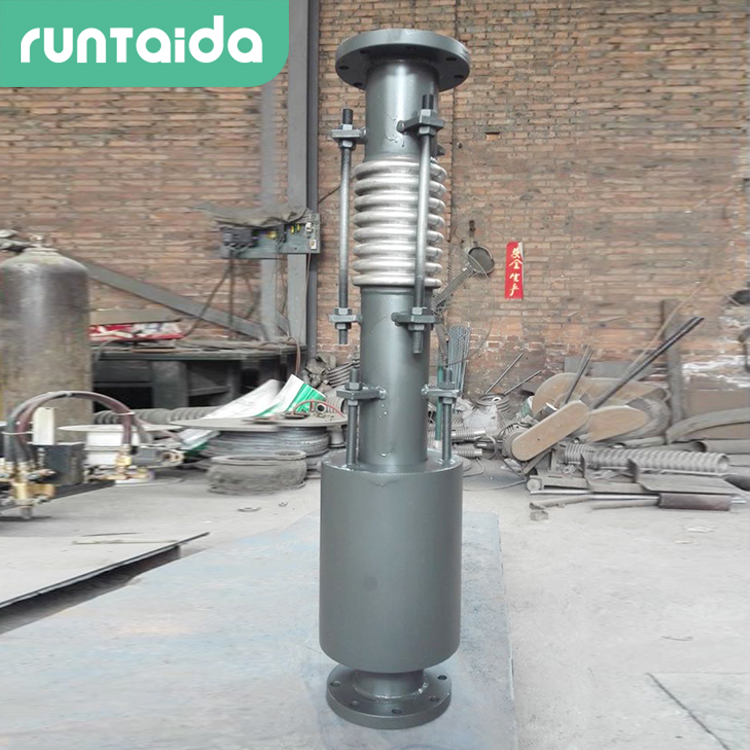 軸向復(fù)式波紋補(bǔ)償器由兩個(gè)或多個(gè)波紋管串聯(lián)在一起,在波紋管外有能夠保證波紋管在軸向移動(dòng)時(shí)不致失穩(wěn)的外罩。這種膨脹節(jié)可吸收較大的軸向位移。對(duì)于這類波數(shù)較多的膨脹節(jié)而言,外罩即是一種保護(hù)裝置以保證膨脹節(jié)在運(yùn)輸或安裝過程中不損壞波紋管。而且,又保證了膨脹節(jié)工作時(shí)的穩(wěn)定性,也是由于外罩的存在,對(duì)于膨脹節(jié)的保溫操作也變得簡(jiǎn)單易行。